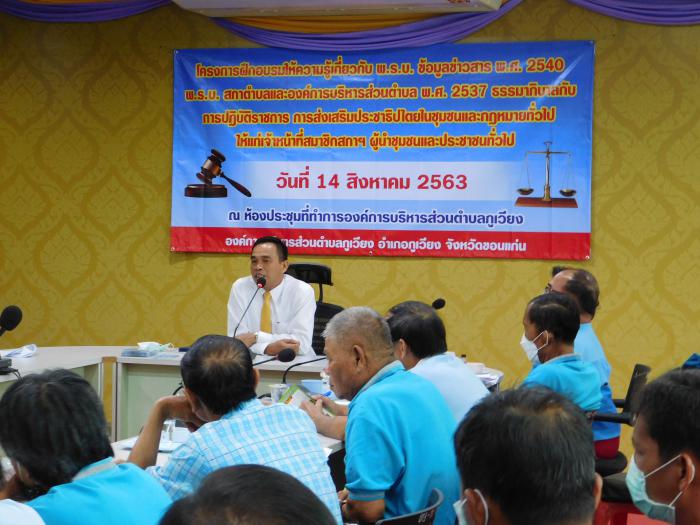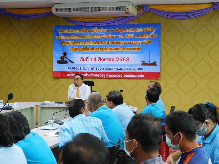 องค์การบริหารส่วนตำบลภูเวียง ได้จัดโครงการฝึกอบรมให้ความรู้เกี่ยวกับ พ.ร.บ. ข้อมูลข่าวสาร พ.ศ.2540 พ.ร.บ.สภาตำบลและองค์การบริหารส่วนตำบล พ.ศ.2537 ธรรมาภิบาลกับการปฎิบัติราชการ การส่งเสริมประชาธิปไตยในชุมชนและกฏหมายทั่วไปให้แก่เจ้าหน้าที่สมาชิกสภาฯ ผู้นำชุมชนและประชาชนทั่วไป
