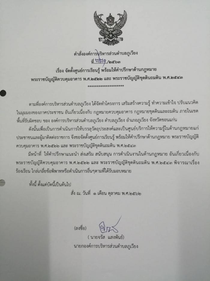 ศูนย์การเรียนรู้พร้อมให้คำปรึกษาด้านกฏหมาย พรบ.ควบคุมอาคารและขุดดินถมดิน
