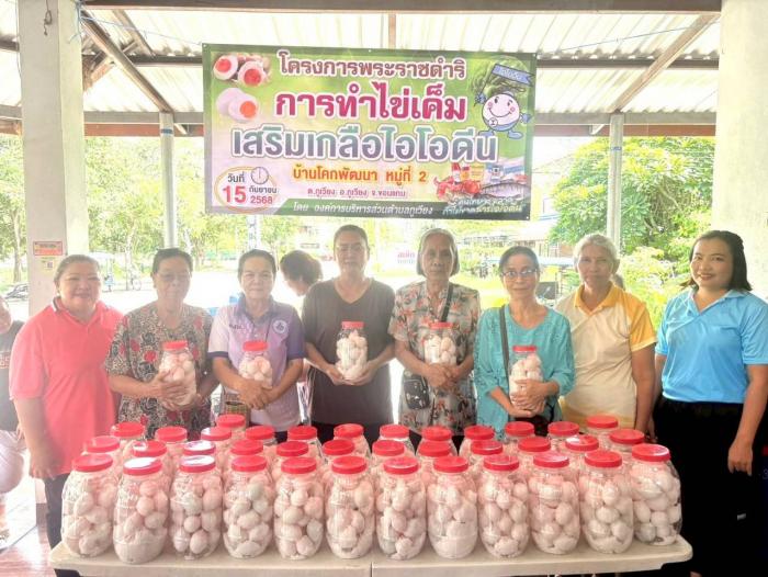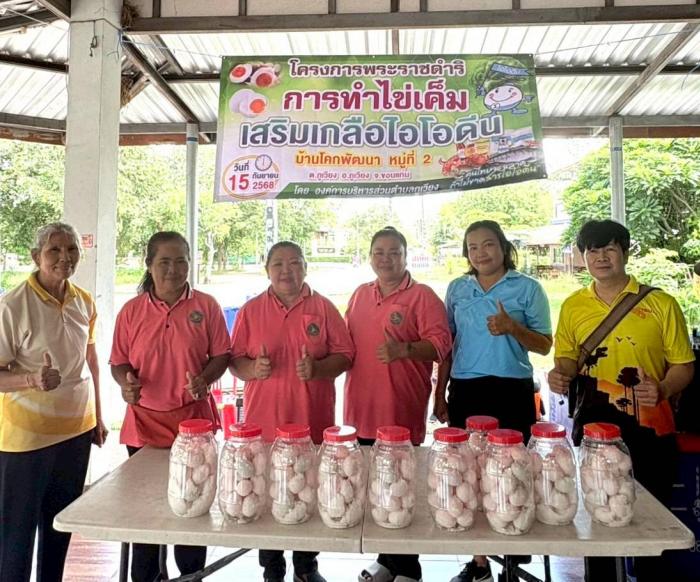 ท่านวิเชียร ไกรศรีวรรธนะ นายก อบต.ภูเวียง ร่วมกับคณะผู้บริหาร กำนันผู้ใหญ่บ้าน พนักงานเจ้าหน้าที่ อบต.ภูเวียง ร่วมกิจกรรมโครงการพระราชดำริด้านสาธารณสุข โครงการควบคุมโรคขาดสารไอโอดีนของสมเด็จพระกนิษฐาธิราชเจ้า กรมสมเด็จพระเทพรัตนราชสุดาฯสยามบรมราชกุมารีในระหว่างวันที่ 8-15 กันยายน 2568 เพื่อให้ประชาชนในตำบลภูเวียง ได้รับความรู้เรื่องเกี่ยวกับการควบคุมโรคขาดสารไอโอดีนและได้บริโภคไข่เค็มป้องกันโรคคอพอก และสามารถนำความรู้ที่ได้จากการทำไข่เค็มสามารถต่อยอดเป็นอาชีพสร้างรายได้